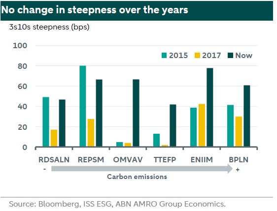 Lastly, we zoom into the oil and gas sector to show that there is no evidence that credit curve steepness changed over the years, despite investors increasingly focusing on ESG risks