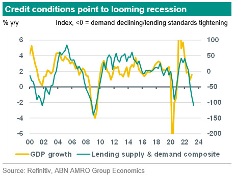 Against the still-inflationary backdrop, recessionary forces have continued to build. The Fed’s Senior Loan Officer Survey (SLOOS) for Q1 was released on Monday, and showed a more pronounced tightening in lending standards on the part of banks, as well as declines in loan demand on the part of businesses. Lending standards have now been tightened for four consecutive quarters, while demand for credit has contracted for three consecutive quarters. Our composite credit supply/demand indicator is now weaker than the pandemic trough of Q2 2020, and the lowest it has been since the height of the Great Recession in Q2 2009. As we describe in our April Global Monthly, the SLOOS is a strong leading indicator for GDP growth, and the Q1 readings suggest that if anything, the coming recession could be deeper than we currently forecast. Based on the historic relationship, and excluding the extreme swings of the pandemic, it suggests GDP growth will fall to around -2% y/y, whereas our forecast trough in GDP growth is -0.4%.
