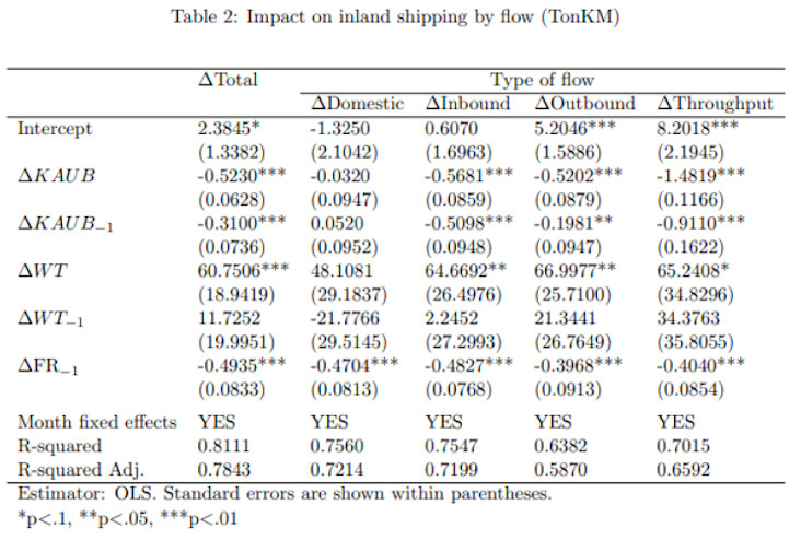 De resultaten van de tweede fase komen ook overeen met onze bevinding dat het volume van het binnenlandse goederenvervoer binnen Nederland immuun is voor ontwikkelingen op de Rijn in Kaub.
