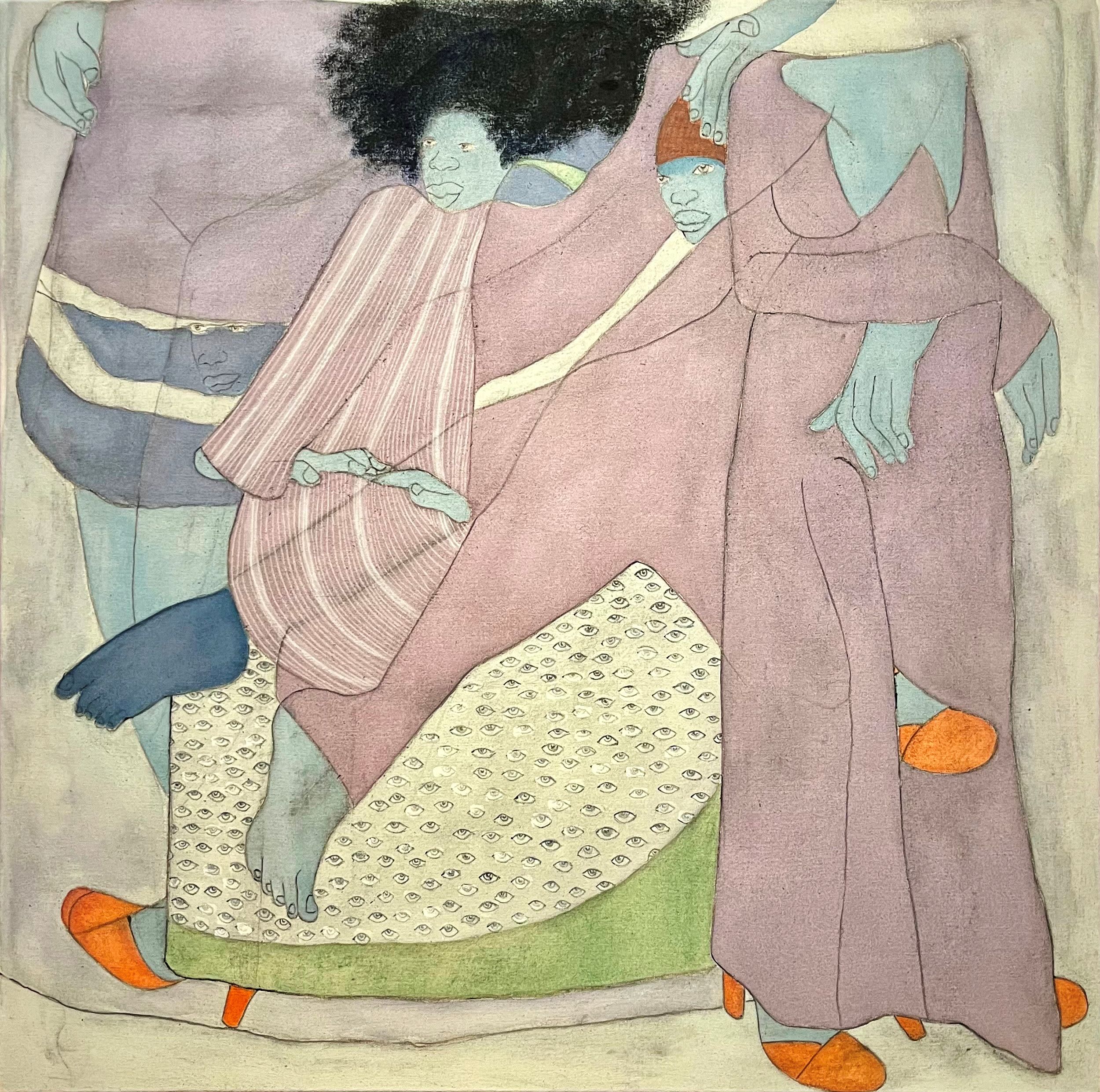 Ivna Esajas’ work moves at the intersection of drawing and painting. Her figures flow into each other and form temporary connections that are both fragile and resilient. In a poetic and playful way, she raises questions about our interconnectedness and our relationship to history. This commitment to collectivity is at the heart of this project. From her practice – where perspectives continuously intertwine — the exhibition was developed as a call-and-response, a concept based on interaction, to which different makers contribute from their respective practices.