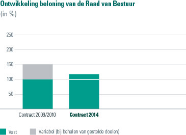 The members of the Executive Board of ABN AMRO were recruited in 2009 and appointed in 2010. When the members of the Executive Board of ABN AMRO (excluding the chairman) were recruited in 2009, an agreement was made with the Ministry of Finance. about their employment conditions. The remuneration agreement was a fixed salary of EUR 600,000 and 50 percent variable remuneration for achieving set goals up to a maximum of 60 percent for exceeding those goals. The members of the ABN AMRO Executive Board have achieved or exceeded the targets set in recent years and were therefore contractually entitled to a total remuneration of at least EUR 900,000. However, for directors of state-supported banks, including ABN AMRO, the right to variable remuneration expired in 2011 as a result of the Bonus Prohibition of State-Supported Enterprises Act. This act included a compensation option for a maximum of 20 percent of the fixed salary. The Supervisory Board of ABN AMRO, in agreement with the shareholder, has opted to partially apply that legally permitted increase by 16.67 percent from 2012. For the years 2012 and 2013 the members of the Executive Board have waived this . The Supervisory Board has decided to pay this from 2014, so that the fixed remuneration of the members of the Executive Board from 2014 is EUR 707,500 per year. Taking into account the pensionable nature of that increase, the remuneration is 17 percent lower than the remuneration to which they have been contractually entitled since 2009 in achieving the set goals. The remuneration of the chairman of the Executive Board has not changed.
