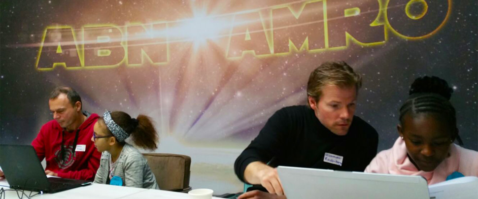 ABN AMRO Foundation is an outstanding collaborative partner. There’s a clear division of responsibilities, as the Coding for Amsterdam project shows. StartupAmsterdam liaised with the schools, while ABN AMRO and Dell made sure the laptops ended up in the classrooms. Getting all those laptops delivered on time for the World Record event was no small feat, and ABN AMRO Foundation did a fantastic job. After all, equipping fifty schools with quality hardware is a tremendous task. Unfortunately, since supplies were limited, we had to turn down several schools simply because we ran out. Nevertheless, ABN AMRO did manage at the last minute to set up a number of computers temporarily so that an additional six schools could participate and do their bit to help break the record.