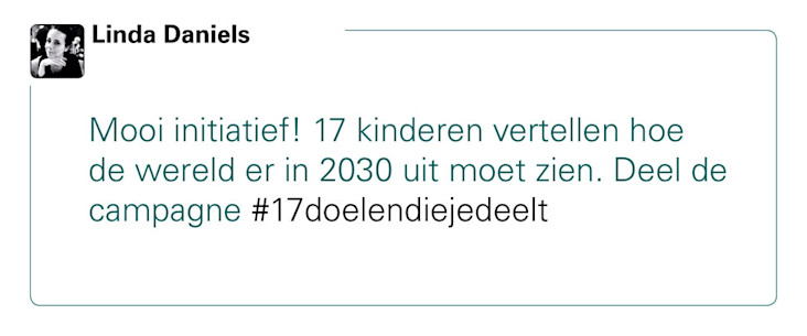 'A campaign called "17 doelen die je deelt" (17 goals you share) kicked off at Amsterdam’s Westergastheater on 8 September. The campaign consists of a series of seventeen video portraits featuring children – tomorrow’s leaders – sharing their vision of the world in 2030. The campaign is in support of the Global Goals for Sustainable Development which the UN member states drafted in 2015 to ensure that the world will be fairer, healthier and more sustainable by 2030. Up to now, the objectives have been rather technical and complex. But since the campaign, they’re now accessible to a much broader group. After all, if a kid can explain it, it must be child’s play, right? The bank is teaming up with a number of other financial players to see how we can help meet these goals through our clients. We’ll be presenting a report on the initiative to Lilianne Ploumen, the Dutch Minister for Foreign Trade and Development Cooperation, in December.'