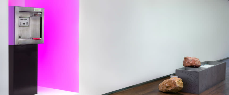 Saskia Noor van Imhoff opened a solo exhibition at the Amsterdam Hermitage, as part of the ABN AMRO Art Award the artist received a year ago. Van Imhoff designed her installation #+32.001 Hot-bain marie drop-in specifically for this exhibition, which also features one of the Netherlands' first ATMs from the ABN AMRO historical archives.