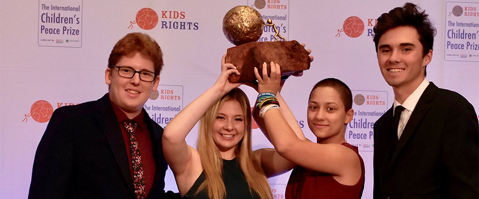 For the first time, the International Children’s Peace Prize has been awarded to a collective rather than an individual. KidsRights patron Archbishop Desmond Tutu gave this year’s prize – the fourteenth – to David Hogg, Emma Gonzalez, Jaclyn Corin and Matt Deitsch, four students from Parkland, Florida, and the initiators of The March for our Lives.