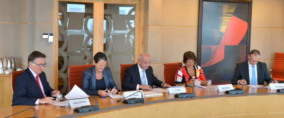 Gerrit Zalm: “Ik ben er trots op dat ABN AMRO als eerste Nederlandse bank dit international framework agreement heeft ondertekend. Hiermee benadrukken we dat iedereen die dat wil, zich kan aansluiten bij een vakbond, zowel in Nederland als in het buitenland. Ook bekrachtigt deze ondertekening met de bonden dat ABN AMRO een sociale en duurzame bedrijfsvoering nastreeft”.