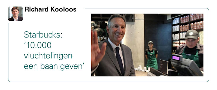 'Veel vluchtelingen die naar ons land komen, willen graag participeren in onze samenleving. We beseffen echter vaak niet dat het ontzettend moeilijk is om als nieuwkomer te starten in een hele nieuwe omgeving. Starbucks helpt deze mensen om hun weg te vinden in onze maatschappij. En ik zie voor het gehele bedrijfsleven eigenlijk een taak weggelegd om deze nieuwkomers op weg te helpen.'
