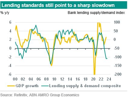 The reasons for the expected slowdown are the same as those that drove our previous, mild recession call. First, while excess savings from the pandemic have been a more persistent support for consumption than expected (and more than was suggested by weak consumer confidence readings), we estimate that liquid excess savings are now very close to being exhausted, and that the savings rate – which is currently well below pre-pandemic levels – inevitably has to normalise, from the current c.4%, back to the 7-8% range.