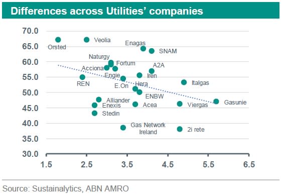 However, not all utility companies score as bad as the average – for instance, Ørsted A/S scores very well in comparison to its peers