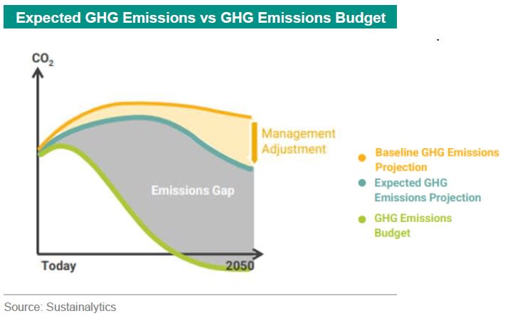 Sustainalytics bases its implied temperature rise calculations on three different GHG emissions pathways: