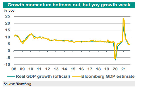 China Macro: Growth momentum picks up, but yoy growth still weak.