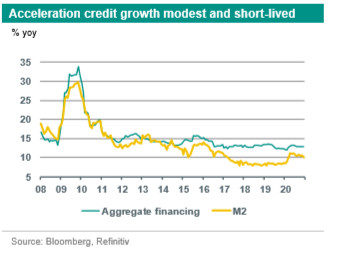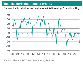 That said, with the economy quickly normalising and the leverage ratio rising again, Beijing shifted priorities with financial derisking coming more in focus again. This is also visible in for instance a renewed crackdown of shadow banking and a more hawkish approach versus fintechs and online platforms. We expect this trend to continue in 2021, although we do not foresee sharp policy U-turns in monetary and fiscal policy. We expect monetary easing to become even more piecemeal and fiscal stimulus being unwound only gradually.