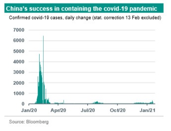In addition, following the recent virus flare-up, the authorities have accelerated their vaccination programme, aiming to have inoculated 50 mln people (3.5% of the population) with Chinese vaccines before the Lunar New Year break. The sequencing of the vaccination is similar to the Netherlands (but the pace is quicker): the roll-out has started with key worker groups, followed by vulnerable segments before widening to all people over 60 years old. All in all, the recent-flare up of the virus and new regional lockdown measures will likely continue to be a drag on consumption at the start of 2021, although the roll-out of vaccinations may help reducing this drag in the course of this year.