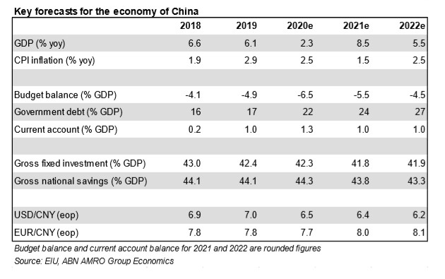 In October 2020, China’s 14th Five-Year Plan was discussed in Beijing during the fifth plenary session of the 19th CCP Central Committee. The ‘dual circulation strategy’ was adopted, including strategic plans for technological development, strengthening domestic demand as a key growth driver and reducing export-reliance on critical inputs such as semi-conductors – given a more protectionist and uncertain external environment. These plans were worked out in more detail during the annual Central Economic Work Conference (CEWC) held mid-December. The CEWC resulted in eight ‘key missions’ for 2021, of which the first three ones particularly related to dual circulation: 1) strengthen strategic technologies (with an important role for the state), 2) strengthen the ability to control industrial supply chains, 3) expanding the role of domestic demand, 4) ongoing reform and opening, 5) ensuring food security, 6) strengthening anti-trust measures and preventing the disorderly expansion of capital, 7) resolving problems of residential housing in major cities and 8) start working towards the goals of achieving peak CO2 emissions before 2030 and carbon neutrality before 2060. Regarding the latter, we do not think that China’s environmental ambitions will yet prove a serious drag to economic growth in our two-year forecast horizon.