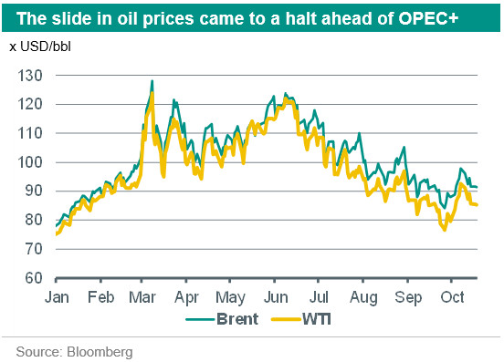 Ahead of the OPEC+ meeting, the rumour was already out that the production levels might be cut. This had triggered support for oil prices. However, in the weeks ahead of the meeting, oil prices had been pushed lower, mainly due to recession fears. And although slower economic growth does translate in a decline in crude demand, it does not reflect the drop in oil prices which we have witnessed in recent weeks. Brent oil prices were still trading just below USD 130/bbl in March of this year, and were still trading above USD 120/bbl in June. However, due to these recession fears, prices had been pushed below USD 85/bbl in September. In other words, prices had been pushed too low. It could well be that there were quite some traders waiting for a buying signal. Something which OPEC+ - and Russia in particular – would welcome, although OPEC always indicates that they are aiming to balance the markets, and do not steer on oil price levels.