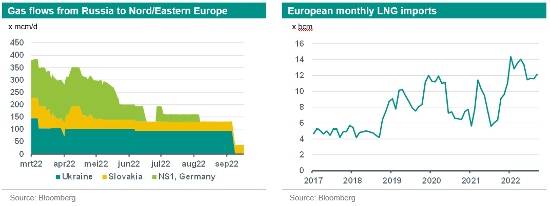 For our price forecasts, we have assumed an average winter demand. We also assume that Europe will be able to maintain a high level of LNG imports, although somewhat lower than we have seen in recent months. After all, Asian LNG demand will increase if gas demand returns somewhat. Asian economic growth will trigger more energy demand whilst the alternative sources run out of capacity. Also lower gas inventories need to be filled ahead of the next Asian winter too.