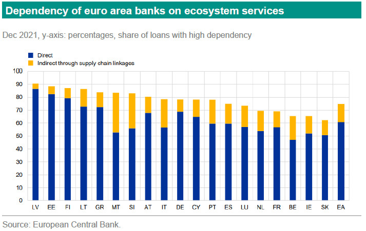 Results show that 72% of NFCs are highly dependent on at least one ecosystem service. And, similarly, 75% of euro area banks’ loans highly depend on at least one ecosystem service