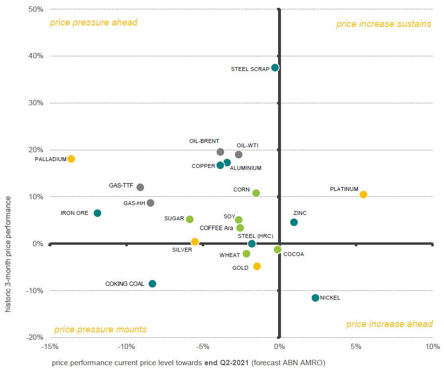 We have a mixed outlook for commodity prices. On the one hand we expect lower prices in oil, gold and silver. On the other hand, the agricultural commodities market sentiment should improve when economies re-open on a larger scale. And finally, the outlook for industrial metal prices will remain constructive. This is mainly because of strengthening industrial activity in both the Chinese and the US economy. The EU economic recovery will set in later.