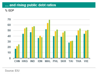 Next to monetary easing, Asian governments in general introduced special pandemic fiscal support to mitigate the fall-out from the covid-19 shock. This pandemic support, in combination with falling fiscal revenues, has gone hand in hand with a clear deterioration of fiscal indicators for all countries concerned. Leaving aside the more ‘developed’ Asian countries, budget deficits are estimated to rise to elevated levels in India, Malaysia and Philippines (around 8% of GDP), followed by Vietnam (7.5%) and China (central government deficit, not the augmented one), Indonesia and Thailand (around 6.5%). As a result, public debt ratios are expected to rise significantly in most countries in 2020-21, but in general remain at manageable levels (with only Malaysia expected to surpass the 60% of GDP level this year). That helps explaining why Asian governments have quite some room for manoeuvre on this front. Nevertheless, the deterioration in fiscal indicators has resulted in rating actions: India was downgraded by Moody’s in June, while India, Indonesia and Malaysia were put on Negative outlook by one or two of the leading rating agencies.
