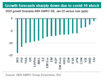 After EM Asia grew by around 6% in 2018 and 5% in 2019, following the covid-19 shock we expect a contraction of regional real GDP this year, by a bit more than 1%. We expect growth to re-accelerate in 2021, to an above trend pace of 7-7.5%. Next year’s re-acceleration is mainly driven by base effects, as the covid-19 driven collapse in the first half of this year will gradually fade out of the figures by then. All this implies that despite the collapse in regional growth in the first half of this year, emerging Asia will remain a relative ‘outperformer’ versus other regions. That partly stems from its generally prudent policies and the availability of ‘buffers’ that create room for fiscal and monetary easing in challenging times. That said, we expect emerging Asia to have lost a bit more than 5% of GDP compared to our pre-corona base case by end 2021.
