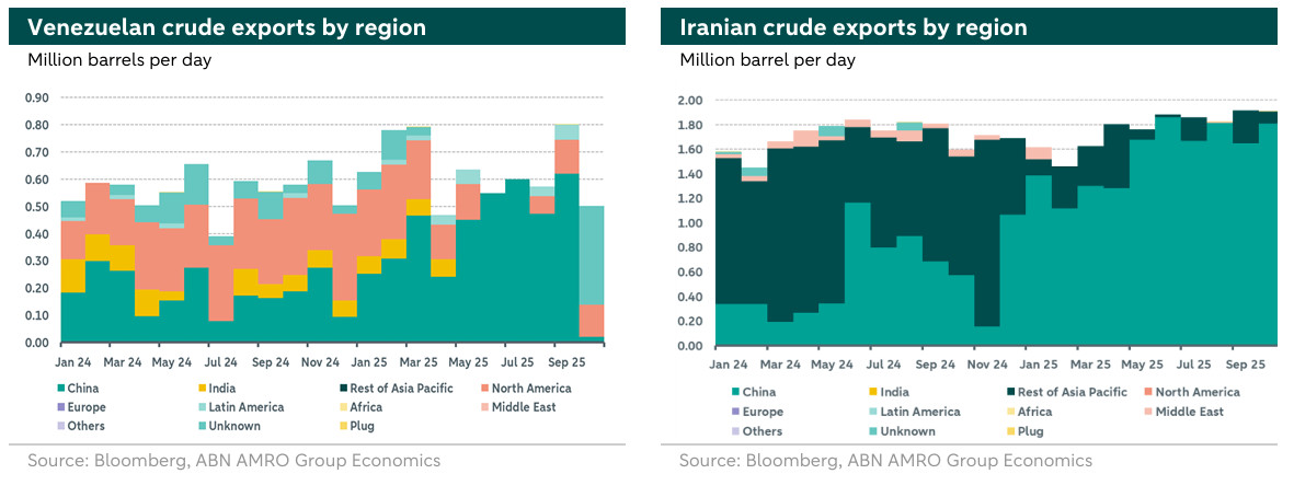 New sanctions and recent tensions between the United States and countries such as Venezuela, Nigeria, and Iran have further heightened supply uncertainty. These developments have also shifted crude oil trade flows, with more exports from these countries being redirected toward China, as illustrated in the charts below.