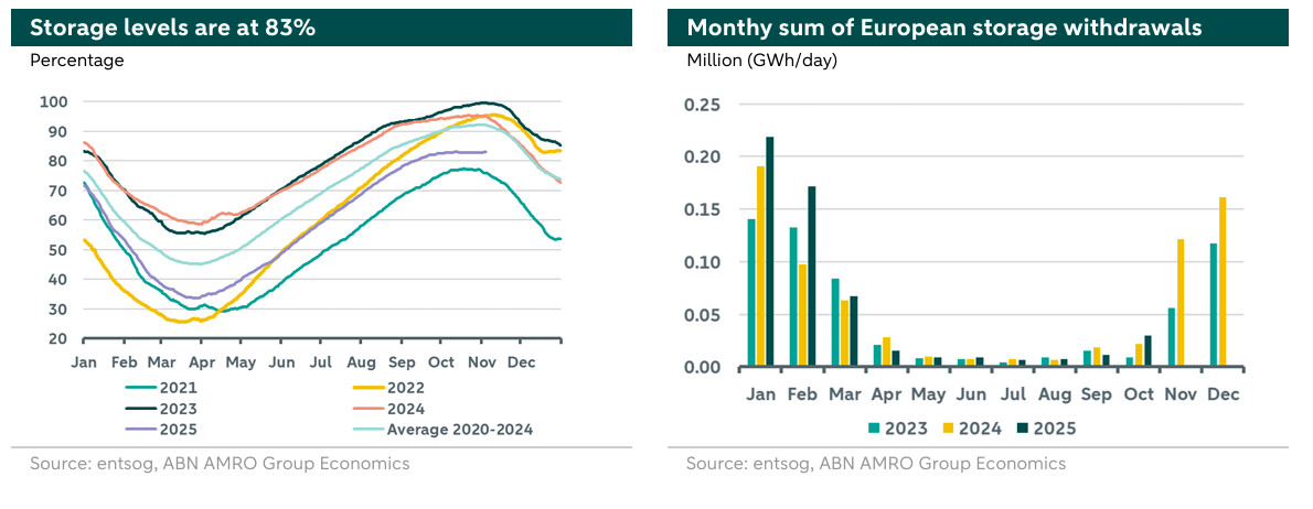 European gas storage at 83%, providing adequate buffer against disruptions and easing geopolitical price impacts