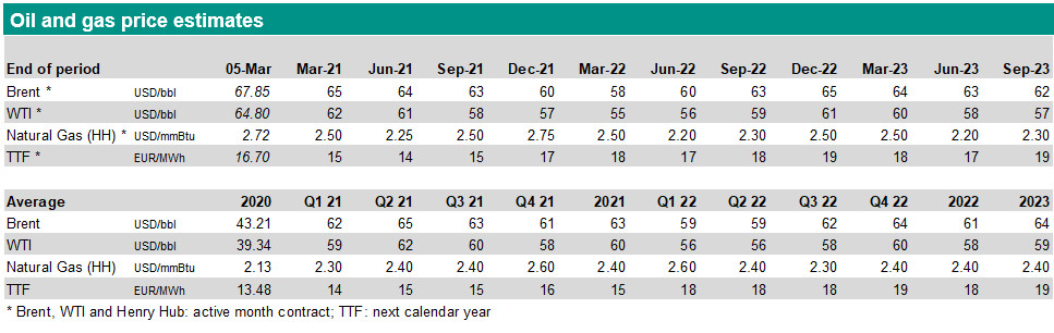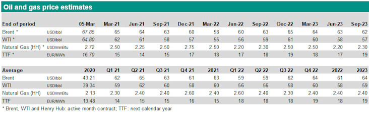 OPEC+ will keep its oil production unchanged in April; Russia is allowed to increase production a bit. Oil price continues to rally and nears USD 70/bbl. The forward curve suggests supply related stress which does not exist. Oil price forecasts lifted after the OPEC+ meeting