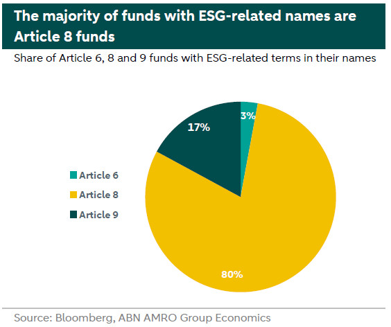 According to Bloomberg, there are 1,826 Article 6, 8 and 9 funds with ESG-related terms in their names, and 52 Article 8 and 9 funds with transition-related terms, under the UCITS directive