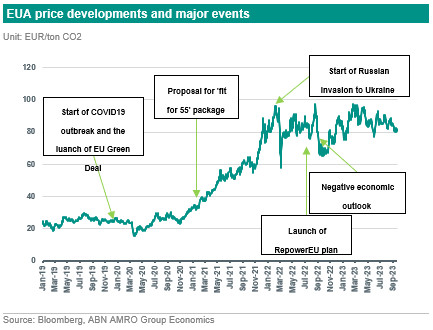EUA prices are driven by many supply and demand factors such as emission reduction factors, abatement efforts, weather conditions, together with fossil fuels prices and investments in renewables
