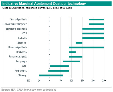Higher ETS prices will positively affect the feasibility and business case for low carbon technologies boosting the transition further in the covered sectors