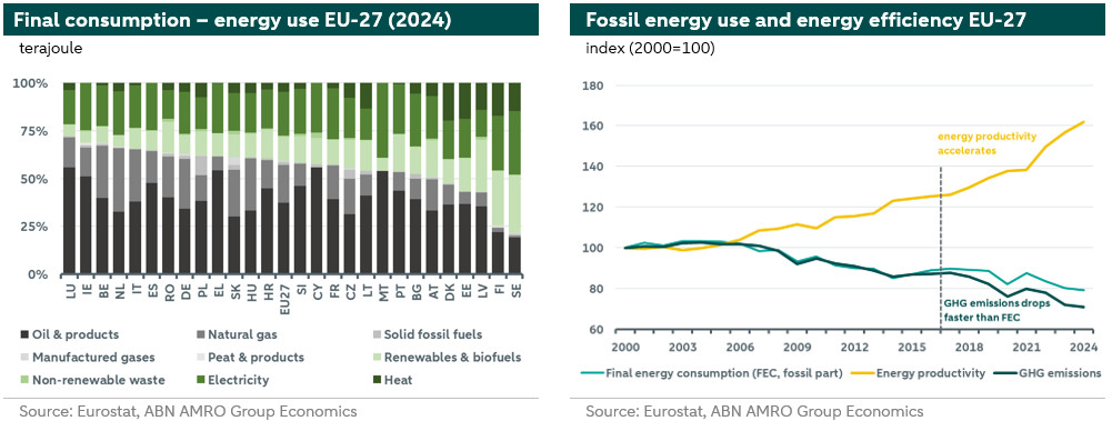 Despite progress, the EU remains dependent on fossil fuels: in 2024, more than 50% of the energy mix consisted of fossil fuels