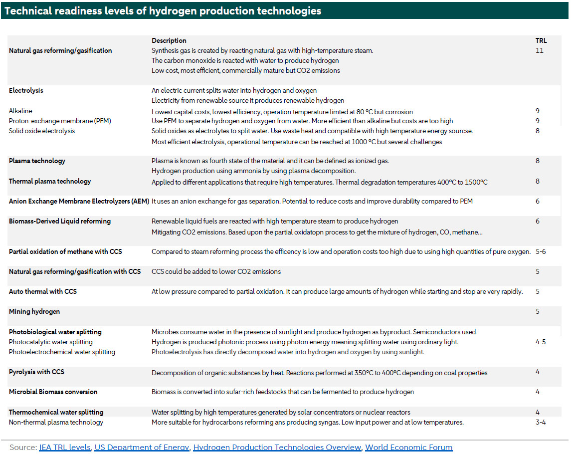 Green hydrogen technologies have lower maturity compared to carbon-based technologies