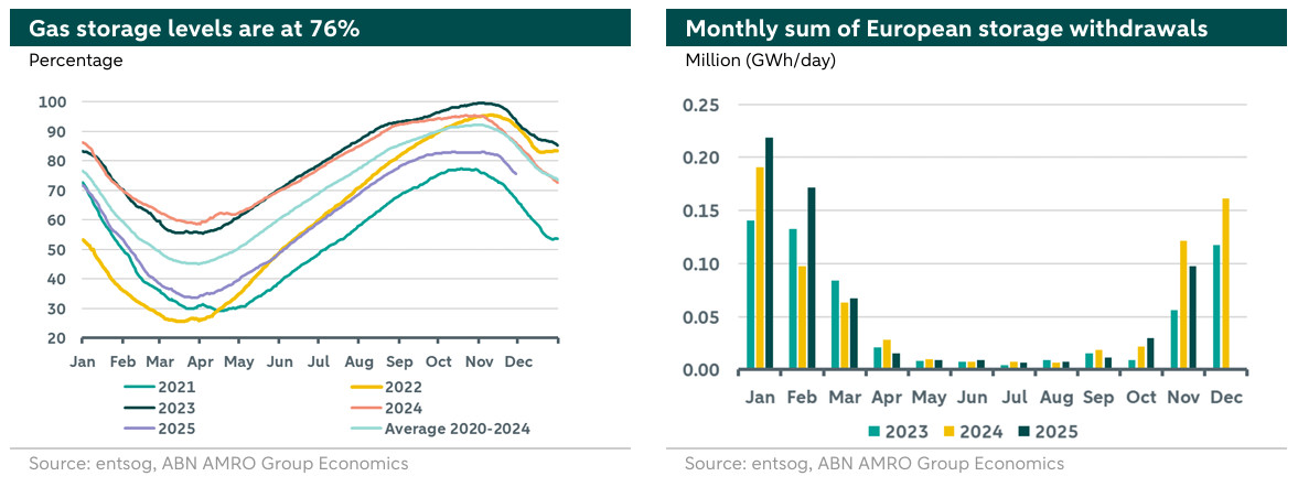 As Europe enters its final winter before new LNG capacity helps alleviate supply shortages, the storage levels this season will play a crucial role in determining the requirements for refilling storage during the following summer. The EU entered the winter with its storage at 83% full (currently at 76%), which would give the continent a thin but sufficient buffer to face emerging supply disruptions, and mute the impact of other geopolitical developments on prices. Overall, the market is showing signs of stabilization. However, gas prices in Europe will remain sensitive to factors such as cold weather or weak wind conditions, which increase heating and electricity demand. Additionally, industrial output growth is expected to gain momentum in 2026, driven by fiscal stimulus from higher defence and infrastructure spending, which could support TTF gas prices throughout the year. Beyond 2026, gas prices are likely to continue normalizing and become more influenced by demand dynamics. This could signal a shift in the relationship between gas, power, and carbon markets, where power and carbon markets may start driving gas prices instead of the other way around.