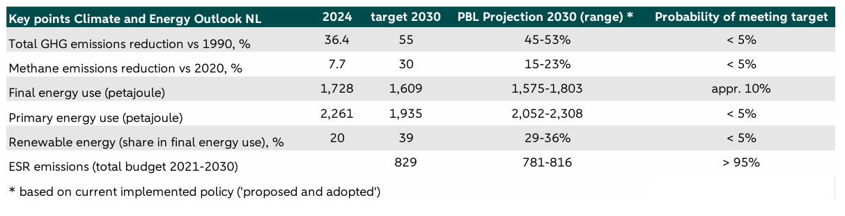 The September 2025 report by PBL Netherlands Environmental Assessment Agency concludes that “reaching the 2030 climate goal is extremely unlikely” and highlights the urgent need for “additional and structural policy”.