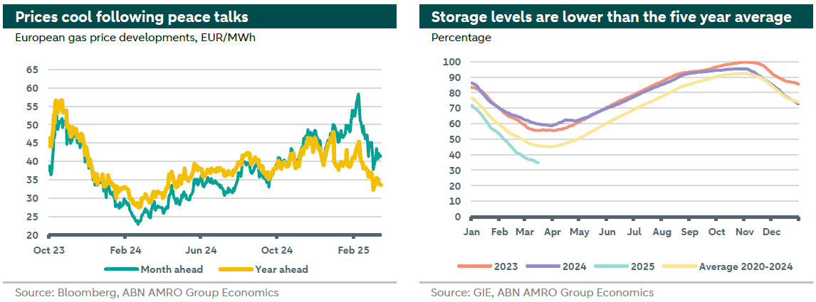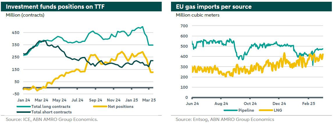The geopolitical premium on TTF prices is down following the latest peace talks to end the Ukrainian war intermediated by the new US administration which would translate into potential return for Russian gas, less tightness and some relief to the European gas market. However, other geopolitical developments could have the opposite impact. For example, the resurgence of tensions in the Middle East with Israel resuming its war on Gaza and the escalation of tensions with Iran could result in higher gas prices. Moreover, the ambiguity surrounding the level, extent, and impacts of US tariffs against wide range of countries increases market uncertainty and add to market concerns.
