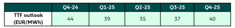 We expect prices to remain elevated during the remainder of 2024 driving our outlook for TTF year-ahead price to average around 44 €/MWh in Q4 of 2024