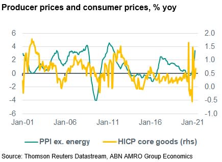 In terms of the current situation, it is difficult to judge how much core goods price inflation has been influenced by developments in producer prices. This is because consumer prices have been extremely volatile because of a number of specific features of the pandemic. It is however likely that the rise in producer prices will also have some upward pressure on consumer prices because of the combination of recovering demand and supply bottlenecks.