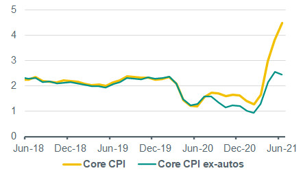 US Macro: Inflation overshoot still mostly an autos story – CPI inflation once again surprised massively to the upside in June – the third month in a row.