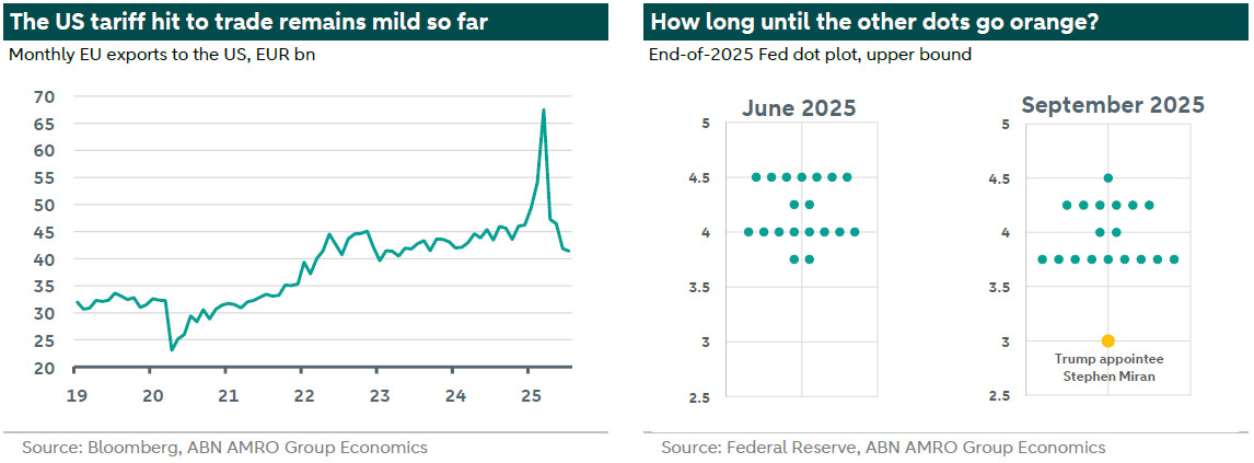 We are seeing more signs of weaker exports and manufacturing from US tariffs, though the hit remains relatively mild so far. German fiscal spending and Chinese policy support should keep the impact of this soft patch contained. As the world grapples with one US-centred economic shock, another looms in the background: the potential loss of Fed independence. Spotlight: A less independent Fed would have implications well beyond US shores, and it could well lead to a resumption of ECB rate cuts.