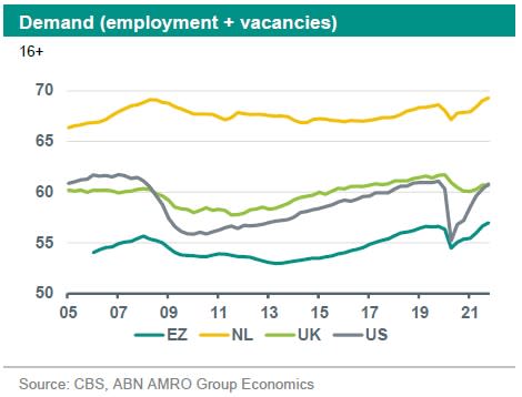 Will sufficient workers be willing and able to fill current and upcoming demand for labour? This is the key question to understand where inflation dynamics will go in the medium term, and what actions central banks are likely to take. In this monthly we therefore focus on these labour market dynamics, paying special attention to the US, the Eurozone, the UK and the Netherlands.