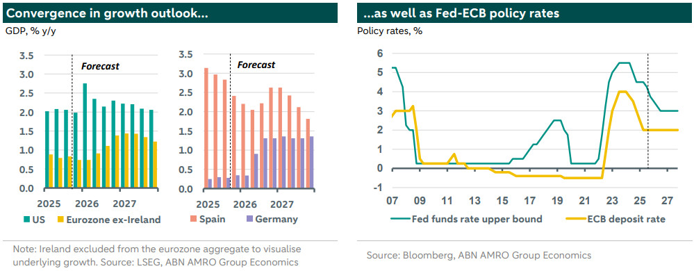 Our base case sees the Fed maintaining its independence, but inappropriate rate cuts could lead to a new boom and bust cycle in the US. This could also lead to tighter financial conditions in Europe – and maybe even renewed ECB rate cuts.