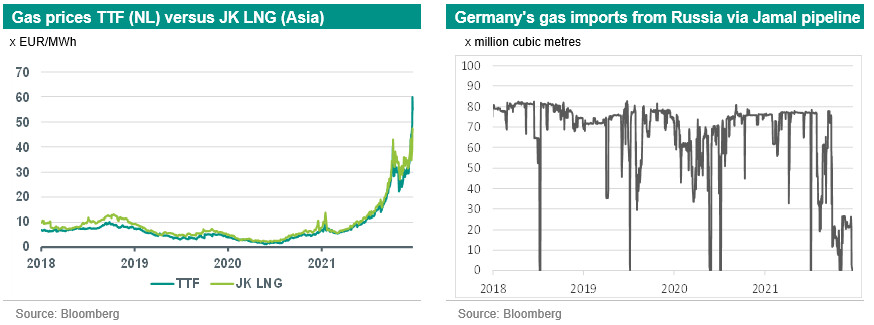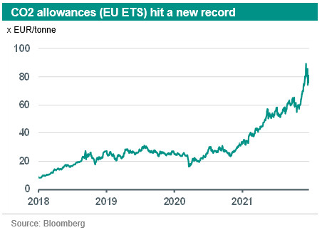 Energy prices are skyrocketing. Not only have Title Transfer Facility (TTF) gas prices reached new record heights and have risen by 800% since the start of the year before easing somewhat, while coal prices are also still relatively high. The relatively low availability of sustainable energy in recent weeks has increased the demand for energy from coal and gas-fired power stations. At the same time, this has caused the demand for CO2 rights under the European Emissions Trading System (EU ETS) to rise sharply. Here too, new record prices have been set recently. On top of that, some French nuclear power plants were shut down last week due to unexpected maintenance. All this leads to tightness in the supply of electricity and have risen with more than 550% since the start of the year to reach record highs. Significant price fluctuations are not unusual in the energy market. However, this time the price fluctuations are unprecedented. Even more worrying is that this time the security of supply can no longer be guaranteed at all times. The latter makes the markets nervous, and creates even more upward price pressure.