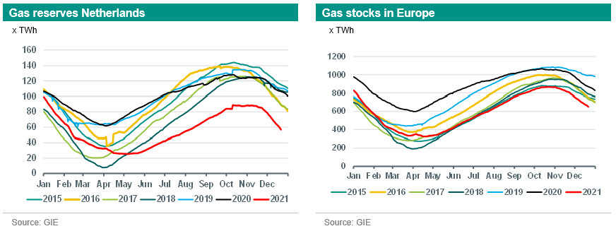 Just before Christmas, there is usually plenty of speculation as to whether it will snow or not. A white Christmas brings the ultimate Christmas feeling for many. However, today many consumers are mainly concerned about their energy bills. Dreaming of a white Christmas' is being replaced by 'hoping for a mild winter'. Only in the event of a mild winter gas inventories will possibly be just enough to prevent major problems. As can be seen from the figures below, gas stocks are at a particularly low level at the start of the winter. The chances of replenishing them in time are fading by the day. Europe does not have very many other options for importing gas. So, we will have to hope for a mild winter to limit consumption and imports as much as possible.