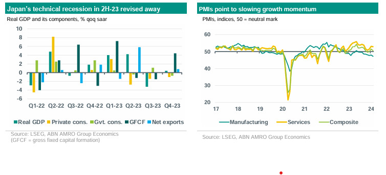 Technical recession revised away; modest economic growth expected for 2024. Disinflation continues, core inflation expected to stay above 2% target during 2024. Bank of Japan close to starting normalising its monetary policy framework. Recovery of the yen to continue, but patience is needed.