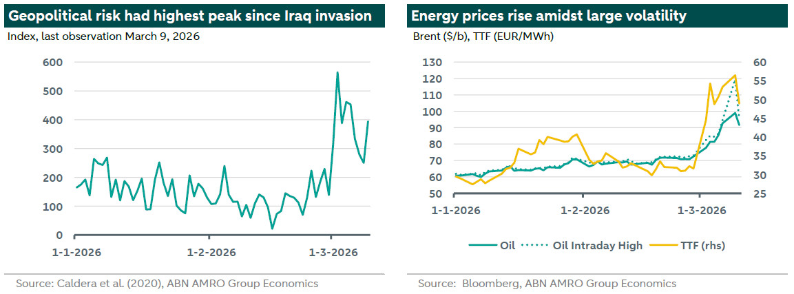 The conflict in between the US-Israel and Iran has entered its 11th day. Geopolitical risk, as measured by the GPR index, has spiked to levels last seen around the Iraq invasion in 2003, and has remained highly elevated since. Since our initial publication last week Monday, it has been a rollercoaster ride for both oil and gas markets [1]. Given the ongoing uncertainty around the duration and impact of the conflict, we have put together three scenarios exploring how the macro-economic impact could evolve over the coming months, focused on the US and eurozone, and with the implications for the ECB and Fed’s key policy rates. We will follow up this note with updates on how we see these scenarios impacting bond and FX markets in the coming days.