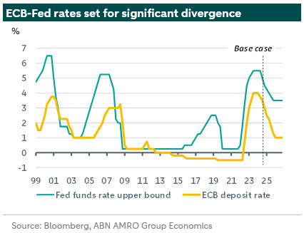 Global Macro: Growth & inflation tariff impact to drive Fed-ECB divergence – We are updating our growth and inflation forecasts in light of the US election result last week. While the election count has not fully concluded, the Republican party looks on course to win a House majority, to accompany the presidency and the Senate majority. By controlling all three branches of government, president Trump therefore has significant power to enact his policy platform. It remains highly uncertain how far Trump will go with his tariff plans, and so there is naturally high uncertainty around our new forecasts. But broadly speaking, the main outcomes of the plans are likely to be: 1) much lower eurozone growth and inflation than in our prior baseline, 2) significantly higher US inflation, and (ultimately) lower growth. This combination is likely to mean fewer interest rate cuts by the Fed, but more rate cuts by the ECB; this will in turn continue to weigh on the euro, which has already weakened significantly in recent weeks as markets moved to price in a Trump victory.