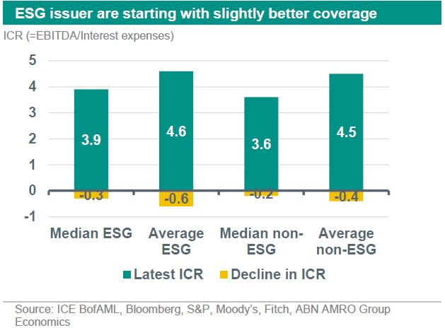 We assess whether interest coverage at issuers which have printed ESG bonds will end-up being more affected than the interest coverage at non-ESG issuers