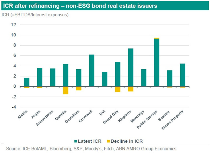 But could this lower credit spread not be compromised in case the ESG real estate bond issuers are facing higher refinancing risks than the real estate issuers, which have not issued ESG bonds? Investors could then perhaps start to put the environmental features on the back-burner and focus on traditional credit fundamentals, especially given the sharp rise in interest rates.