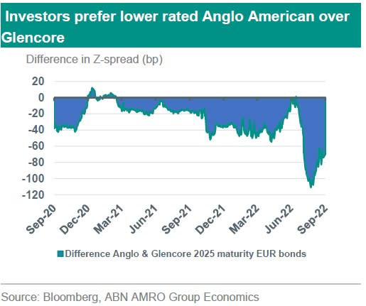 Strangely, in the USD bond market Anglo American spreads trade wider to Glencore. The issuer perhaps felt that it could put this higher appetite by EUR investors to work in a longer maturity and even went for an SLB format for a 2029 bond, the first time for the issuer and also for a mining company in the EUR IG bond space. KPI’s were related to CO2 reduction (scope 1 and scope 2), reduction in fresh water extraction and off-(mining)site job creation.