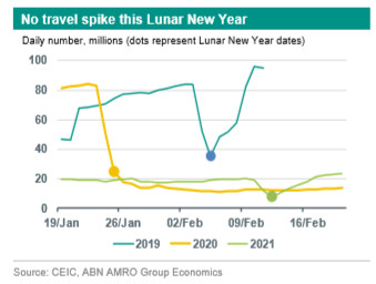 China again successful in quickly containing new outbreaks.No travel spike this Lunar New Year, but there are other ways to spend.China is a leader in pandemic control, but a laggard in its vaccination roll-out. Q1-21: Bumper annual growth, weak quarterly growth.